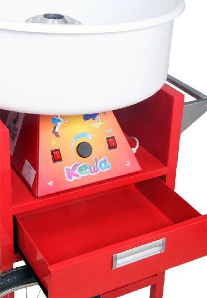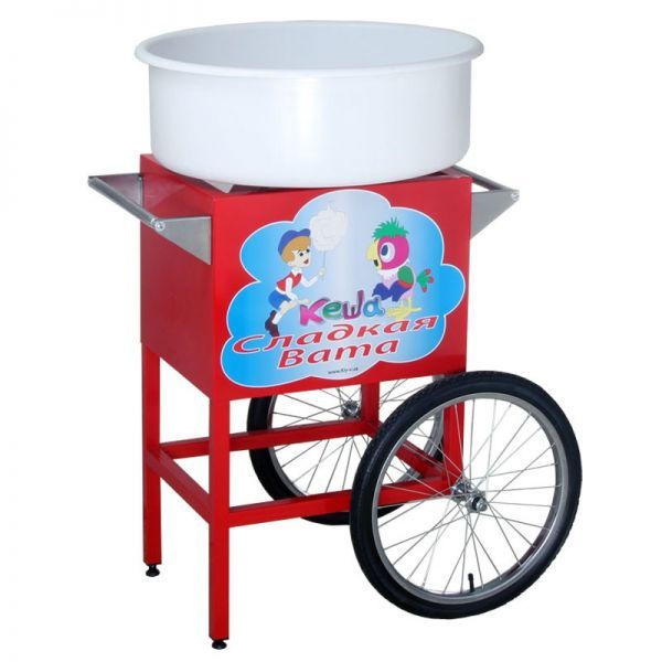 Візок для солодкої вати має вільний внутрішній об'єм. Універсальність візка полягає у підвищеній маневреності.