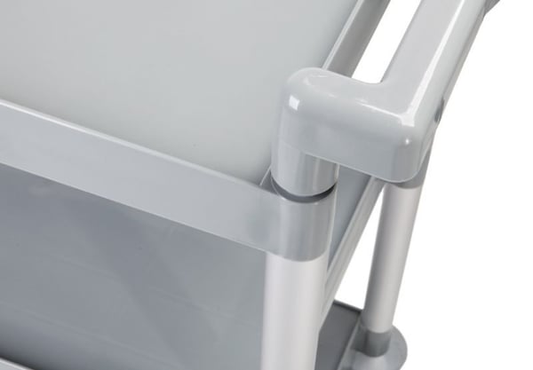 Корпус візка виконаний з нержавіючої сталі, яка характеризується високою корозійною стійкістю і здатністю витримати великі навантаження, а полиці та ручки - з поліпропілену - має високу хімічну стійкість і низьку вологопоглинання.