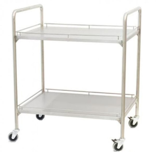 Візки мають міцну зварну конструкцію, оснащені колесами на гумовій основі, що пом'якшують вібрацію. Пара коліс додатково забезпечена блокуванням. На кожній полиці передбачено відбортування з 4-х сторін. Вантажопідйомність візка 100 кг.