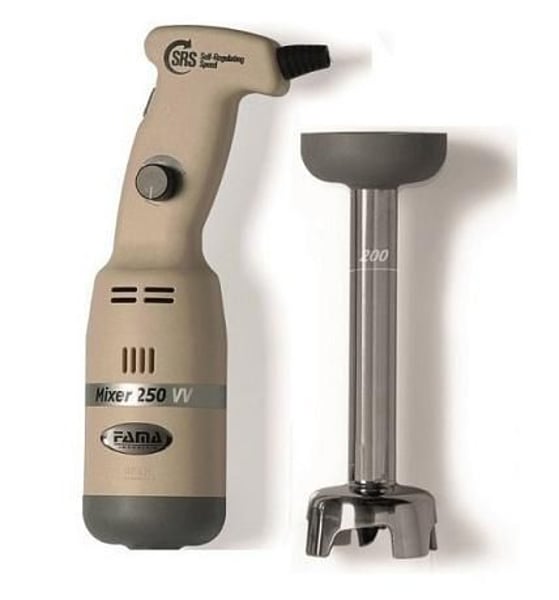 Занурювальний міксер Fama FM250VV200 - необхідне обладнання для приготування особливих страв чи інгредієнтів та напоїв, що скорочує час приготування майже вдвічі та стане справжнім помічником для кожного кухаря. Міксер призначений для подрібнення та змішування харчових продуктів і дозволяє легко й швидко готувати крем-супи, коктейлі, рідке тісто, муси, джеми, збивати вершки та змішувати отримані однорідні маси зі спеціями, харчовими добавками та топінгами в пекарнях, піцеріях, ресторанах та кафе, у тому числі на кухнях підприємств швидкого харчування.