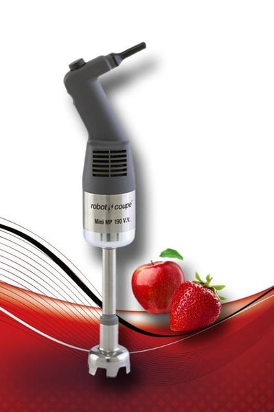 Занурювальний блендер Robot Coupe Mini MP 190 Combi - необхідне обладнання для приготування особливих страв чи інгредієнтів та напоїв, що скорочує час приготування майже вдвічі та стане справжнім помічником для кожного кухаря. Можливість використання різних насадок робить занурювальний блендер багатофункціональним пристроєм. Блендер подрібнює та перемішує, робить соуси та пасти, емульсії, фруктові, овочеві та картопляні пюре, джеми, муси, протерті супи, печінкові паштети, рідке тісто для млинців. У порівнянні зі стаціонарним блендером, занурювальний набагато компактніше, оскільки ним легко користуватися на виїзних заходах. Спеціально розроблений для приготування невеликих порцій.