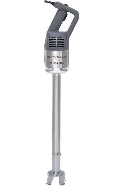 Занурювальний блендер Robot Coupe MP 550 Ultra - необхідне обладнання для приготування особливих страв чи інгредієнтів та напоїв, що скорочує час приготування майже вдвічі та стане справжнім помічником для кожного кухаря. Можливість використання різних насадок робить занурювальний блендер багатофункціональним пристроєм. Блендер подрібнює та перемішує, робить соуси та пасти, емульсії, фруктові, овочеві та картопляні пюре, джеми, муси, протерті супи, печінкові паштети, рідке тісто для млинців. Завдяки великому об'єму, який можливо обробити, дана модель рекомендується до застосування на підприємствах громадського харчування великого формату, наприклад, в їдальнях, а також на харчових виробництвах.