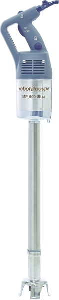 Занурювальний блендер Robot Coupe MP 600 Ultra - необхідне обладнання для приготування особливих страв чи інгредієнтів та напоїв, що скорочує час приготування майже вдвічі та стане справжнім помічником для кожного кухаря. Можливість використання різних насадок робить занурювальний блендер багатофункціональним пристроєм. Блендер подрібнює та перемішує, робить соуси та пасти, емульсії, фруктові, овочеві та картопляні пюре, джеми, муси, протерті супи, печінкові паштети, рідке тісто для млинців. Завдяки великому об'єму, який можливо обробити, дана модель рекомендується до застосування на підприємствах громадського харчування великого формату, наприклад, в їдальнях, а також на харчових виробництвах.