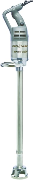 Занурювальний блендер Robot Coupe MP 800 Turbo LED - необхідне обладнання для приготування особливих страв чи інгредієнтів та напоїв, що скорочує час приготування майже вдвічі та стане справжнім помічником для кожного кухаря. Можливість використання різних насадок робить занурювальний блендер багатофункціональним пристроєм. Блендер подрібнює та перемішує, робить соуси та пасти, емульсії, фруктові, овочеві та картопляні пюре, джеми, муси, протерті супи, печінкові паштети, рідке тісто для млинців. Завдяки великому об'єму, який можливо обробити, дана модель рекомендується до застосування на підприємствах громадського харчування великого формату, наприклад, в їдальнях, а також на харчових виробництвах. Максимальна рекомендована потужність обробки сягає до 400 л.